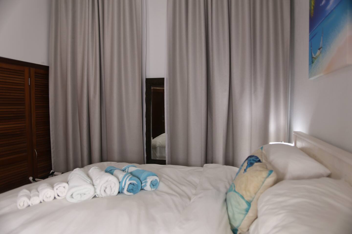 - Check-in is at 3pm, and checkout is at 11am. If you want to guarantee check-in as early as 9am, or guaranteed checkout as late as 5pm, please add a note with your booking request. We can make a special request to the cleaners, and if they are able to accommodate, we can guarantee for an additional charge of $25 for an early or late booking ($50 for both) payable in advance of check-in. - Guests will keep property and furnishings in good order and only use appliances for intended uses. - Babies OK with supervision but apartment is not child proofed. Crib available upon request although availability not guaranteed. - 4 to 6 Guests preferred. Fold out sofa bed in living area enables up to 8 guests at extra cost of $50/person/night for guests 7 and 8. This is so we can safely provide sanitized linen/towels for the guests using the sofa bed. - Pets are not allowed in guest accommodations. - People other than those in the guest party may not stay overnight and agreed occupancy limit must not be exceeded. - Any other person on the property visiting the guest is the sole responsibility of the guest. - Excessive noise not allowed between 10pm - 8am. - Owners not responsible for any accidents, injuries or illness that occur and are not responsible for loss of any personal belongings or valuables of the guest. By booking a reservation, it is agreed that all guests are expressly assuming the risk of any harm arising from their use of the premises or others whom they invite to use the premise. - No daily/weekly housekeeping service provided although this can be arranged by request for an additional fee during your stay - please request if you would like this service and you will pay our trusted cleaner cash directly. - No smoking or vaping allowed in the apartment including e-cigarettes, marijuana, etc. If you are a smoker, you will only be able to smoke near the pool or outside areas. - One bath towel and one large beach towel supplied for each guest (to total number of guests stated in property). - Washer/Dryer in apartment allows for washing/drying of towels/linens during duration of stay if required (washing liquid not provided due to preferences and allergies but can be purchased 3-5 mins walk from local mini-market or supermarket up road). - Sufficient trash bags, coffee and dishwasher tablets are provided for 3-4 days; for longer stays guests may need to purchase extra supplies from the supermarket or mini market about 3-5 mins walk from the property. - Trash is collected daily directly outside the apartment Mon - Sat; please put trash in the garbage can outside door in hallway for daily collection (except Sunday).