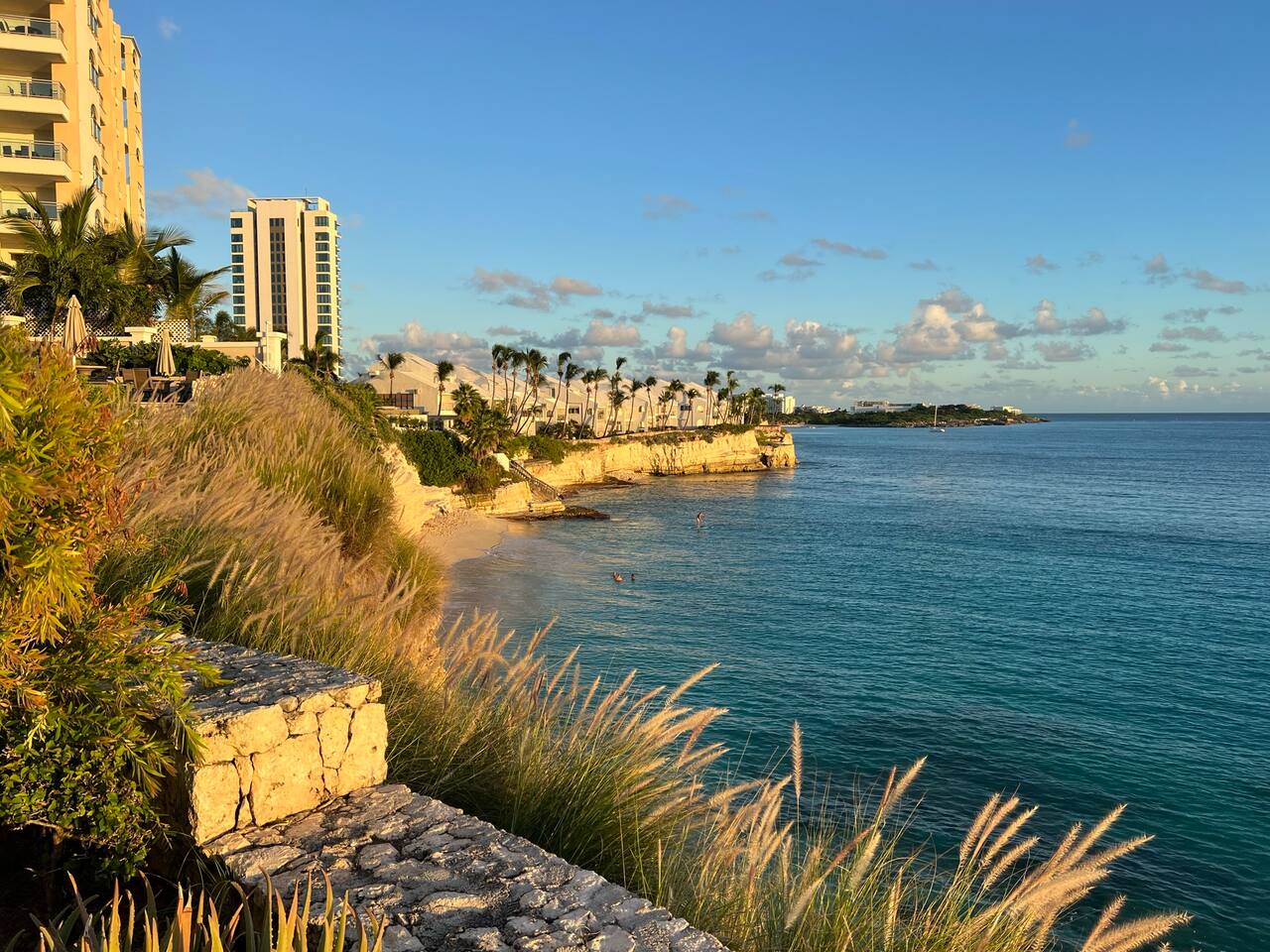 Nestled on the southwest coast of the idyllic Caribbean island of Sint Maarten, Cupecoy Bay is a true paradise on earth. Its striking limestone cliffs create a dramatic backdrop for the turquoise waters that gently lap against its pristine beaches of soft, white sand. The bay's secluded coves and hidden caves offer a sense of mystery and adventure, while its peaceful atmosphere and spectacular sunsets inspire a deep sense of relaxation and tranquility. Take a stroll along the shore and feel the warm sun on your skin as you soak up the breathtaking views of the Caribbean Sea. Indulge in the refreshing waters of the bay, dive into the vibrant underwater world, or simply bask in the gentle ocean breeze. Cupecoy Bay's natural beauty is matched only by its rich history and culture. The nearby historic Fort Amsterdam and charming village of Cupecoy offer a glimpse into the island's past, while its vibrant nightlife and gourmet dining scene provide a taste of its present-day allure. Whether you're seeking adventure or seeking serenity, Cupecoy Bay is the ultimate Caribbean escape, a haven of beauty, culture, and relaxation that will leave you feeling rejuvenated and inspired. We will send you our comprehensive list of “things to do on Sint Maarten” full of our own personal favorites once your booking is confirmed!