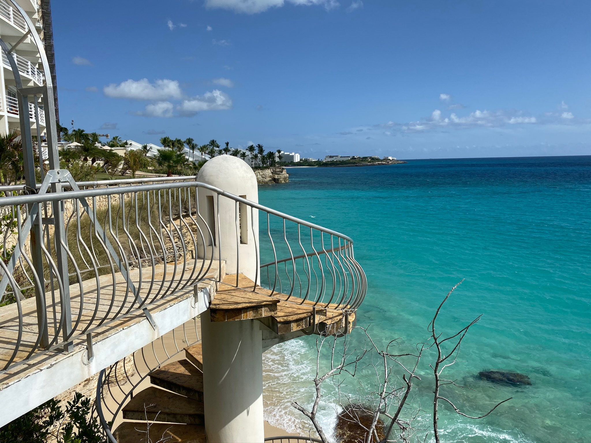 Indulge in relaxation at this spacious apartment in Rainbow Beach Club resort. Enjoy the picturesque private beach via an iconic spiral staircase, and two beautiful pools. Multiple restaurant and bar choices, a French bakery, and a supermarket are all within walking distance. Secure parking on the premises allows for worry-free nights, and famous Mullet Bay Beach is just a few minutes' walk away. Experience the breathtaking sunsets and create unforgettable memories during your stay.