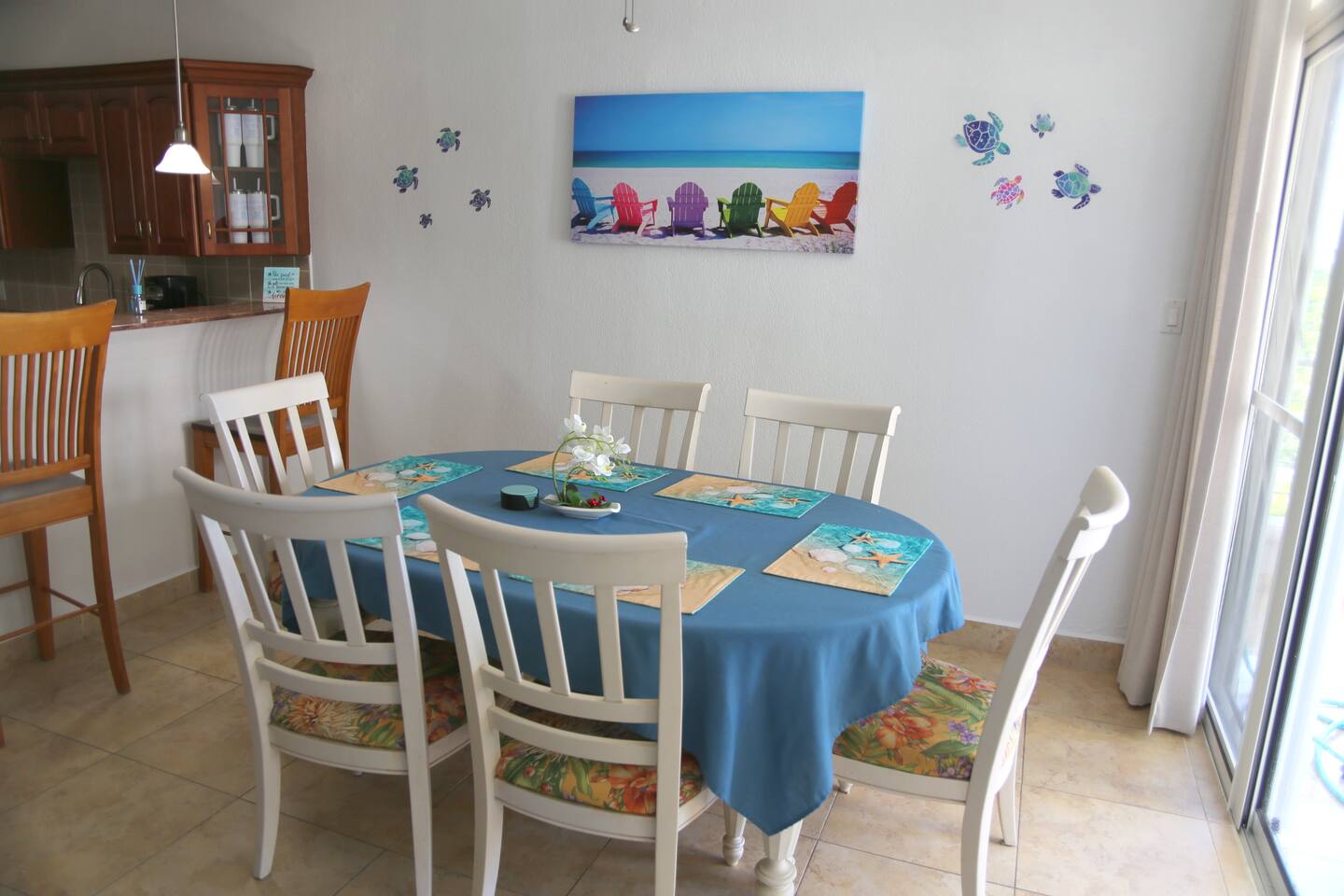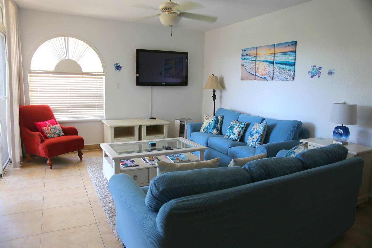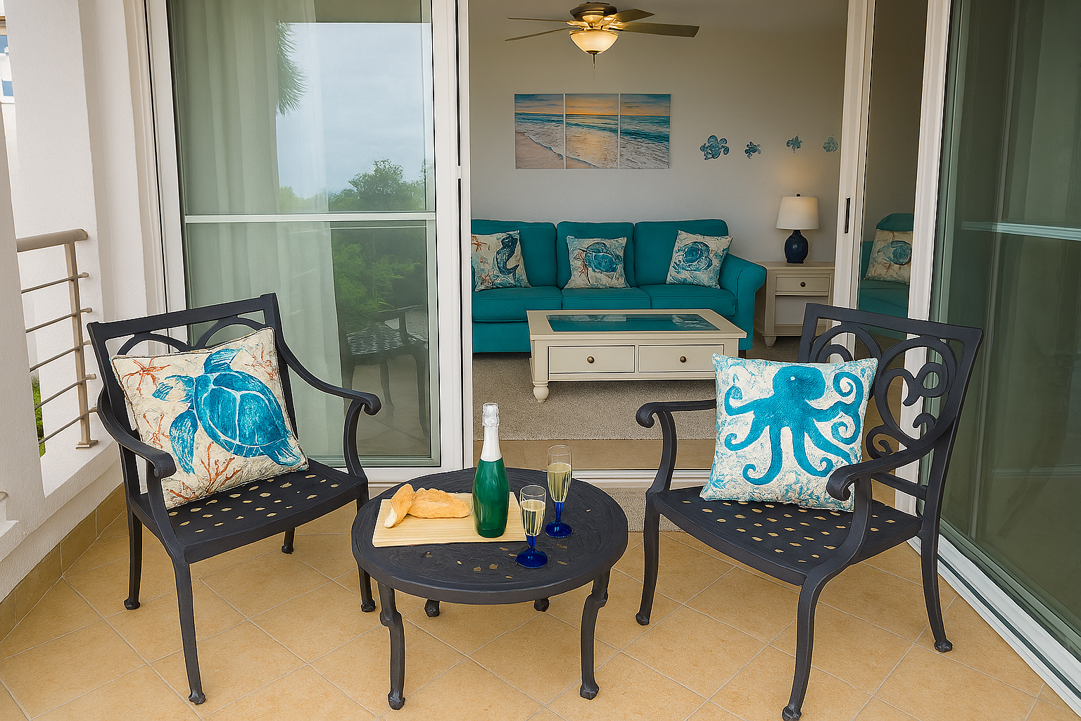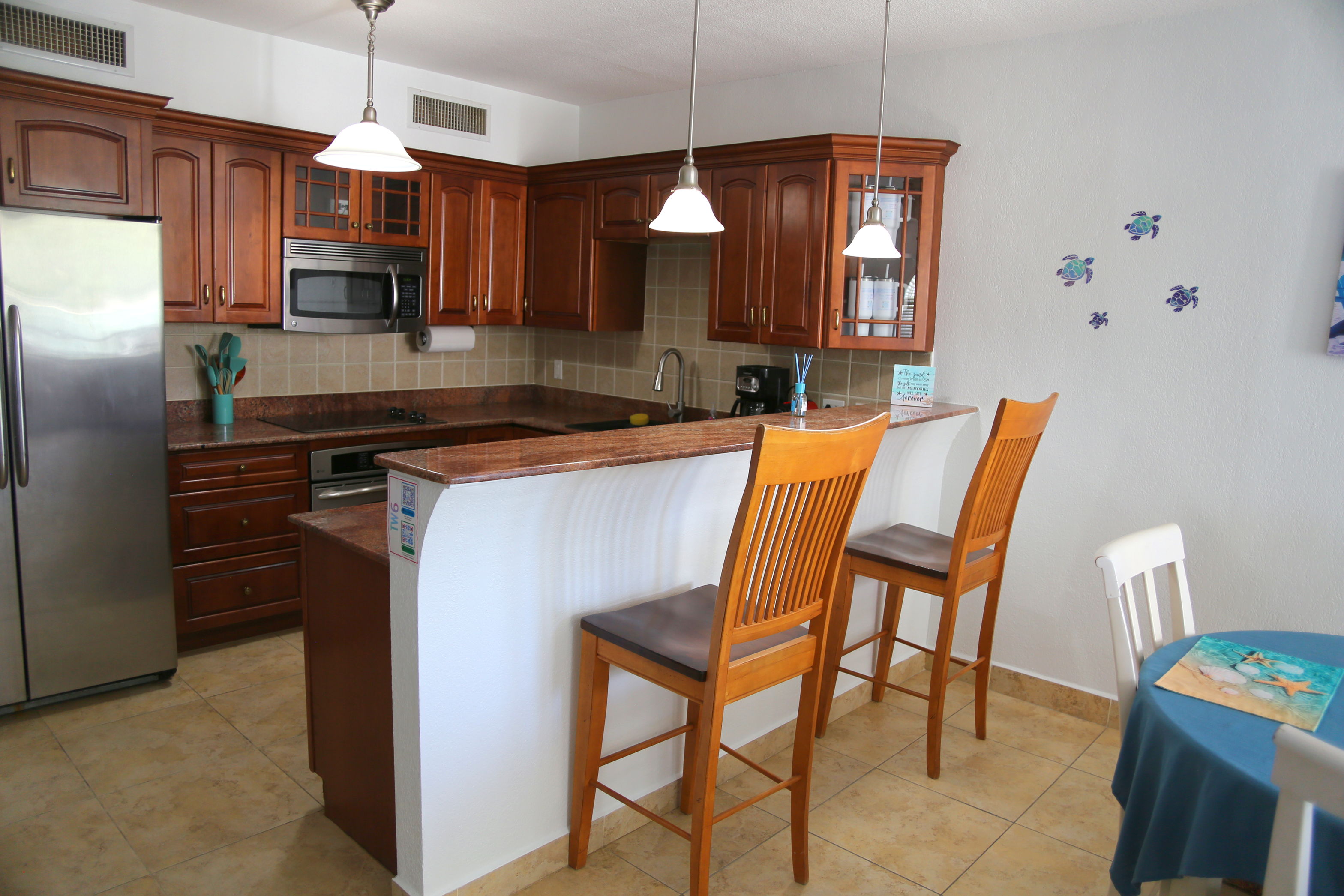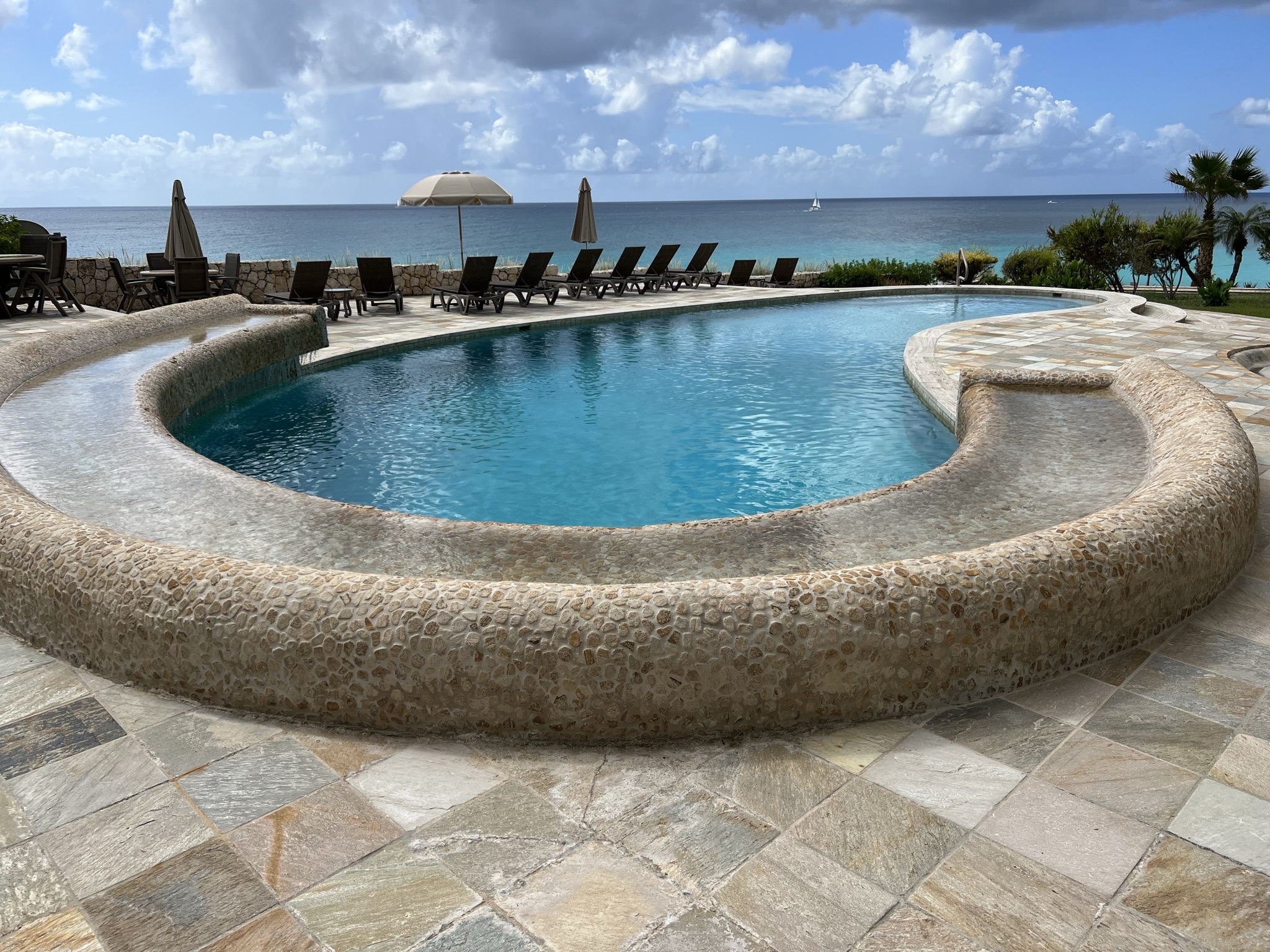 Welcome to your oceanside home away from home—where comfort, style, and stunning views come together. From the moment you walk in, the open living room invites you to relax with plush seating and a cozy armchair. Whether you're streaming your favorite shows on the smart TV with Netflix or Amazon Prime, or simply enjoying the peaceful ambiance, this space is designed for unwinding. Stay connected with complimentary Wi-Fi, or disconnect and recharge on your private balcony, where breathtaking ocean views, warm sunshine, and a refreshing breeze await. The spacious dining area features a large table, perfect for enjoying meals and making memories with loved ones. The fully equipped kitchen includes modern appliances—Ninja coffee maker, toaster, blender—and plenty of counter space, making it easy to prepare your favorite dishes while soaking in the view. The master bedroom offers a king-sized bed and a beautifully tiled ensuite bathroom for a luxurious experience. The second bedroom features a queen-sized bed, and the guest bathroom is equally elegant and comfortable. With a full-sized washer and dryer in the unit, you can pack light and stay fresh throughout your visit. The resort features three pools: two oceanside pools with spectacular views (one with a wrap-around waterfall), and a third shaded pool—perfect for cooling off or relaxing out of the sun. A spiral staircase leads down to Cupecoy Beach, where you’ll find a secluded cave and a quiet stretch of sand ideal for swimming, snorkeling, or sunset walks. Secure on-site parking adds peace of mind, so you can fully relax and enjoy your stay. Come for the comfort, stay for the sunsets. Your island getaway awaits.